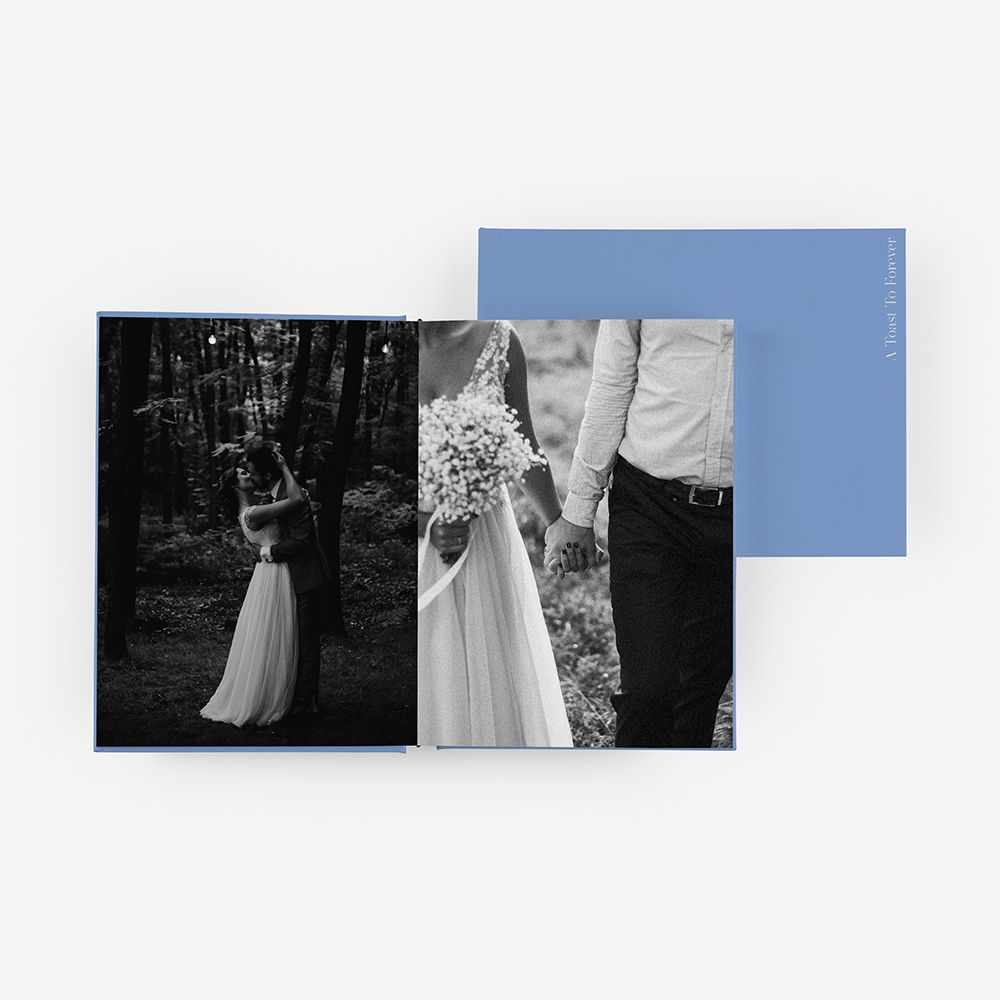 Inspirado na beleza do momento, o tema A Toast to Forever é perfeito para quem quer um álbum com presença. Cada página realça as fotos do vosso dia com naturalidade e intenção.